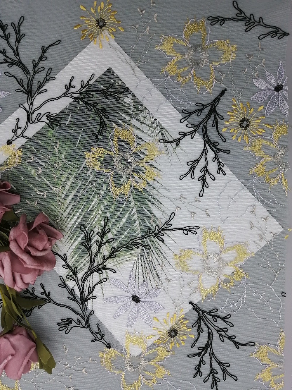 Markeren: | Tulle Mesh Corded Lace Fabric,125cm Mesh Corded Lace Fabric,125cm Tulle Bloemenkantstof |