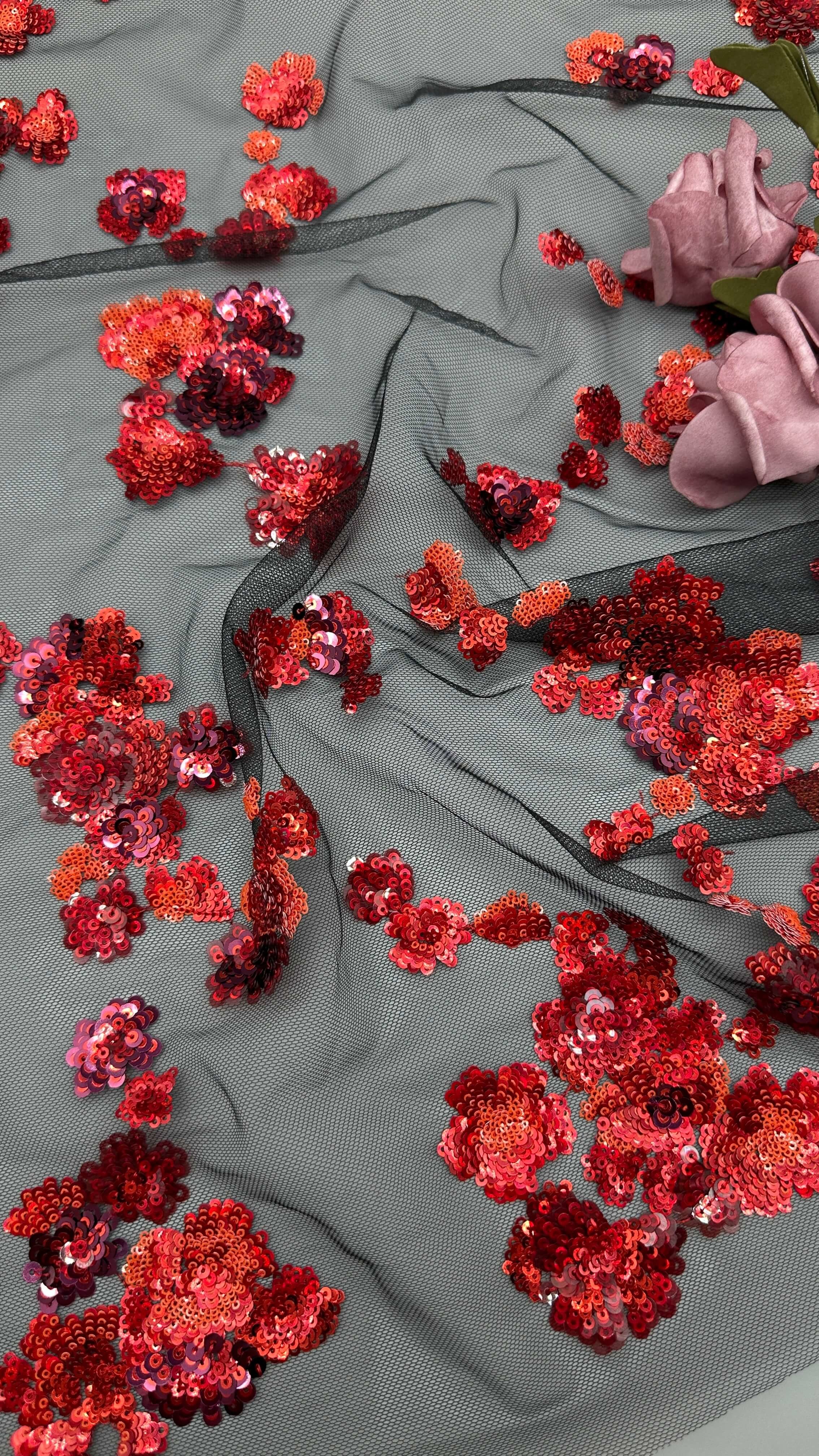 Markeren: | 3D bloemensequin geborduurd kantstof,Rood geborduurd kantweefsel,Bruiloftsbroek Sequin Borduurde kantstof |