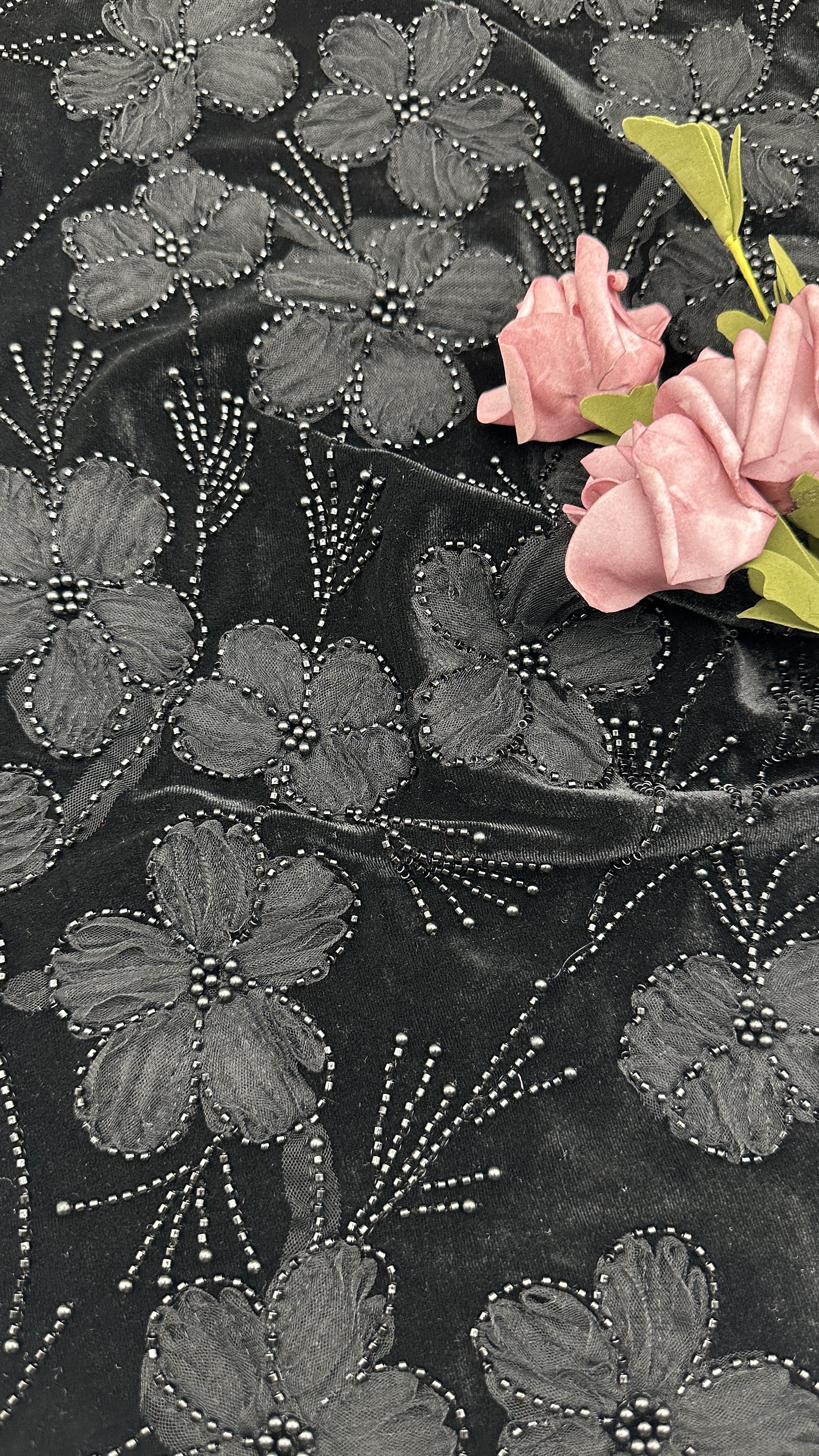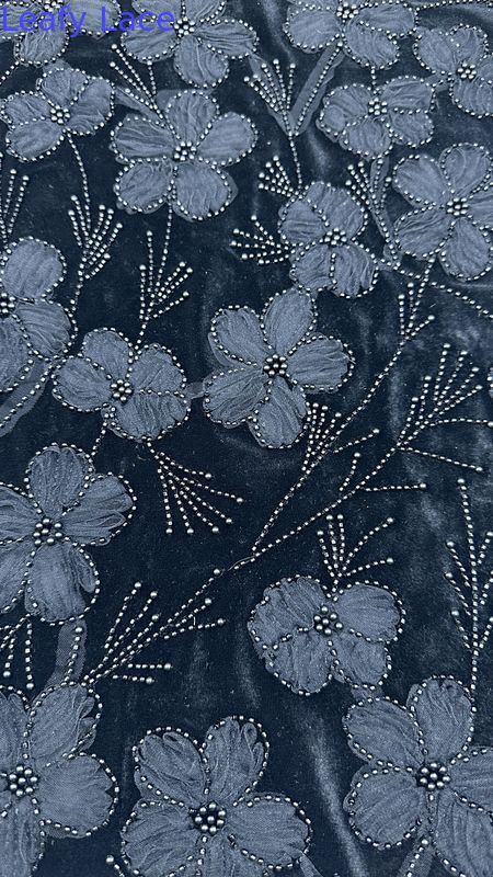 Markeren: | Elegant geborduurd perlenstof,Luxe geperste embroidery stof voor speciale gelegenheden,3D-bloemengroefde borduurstof |