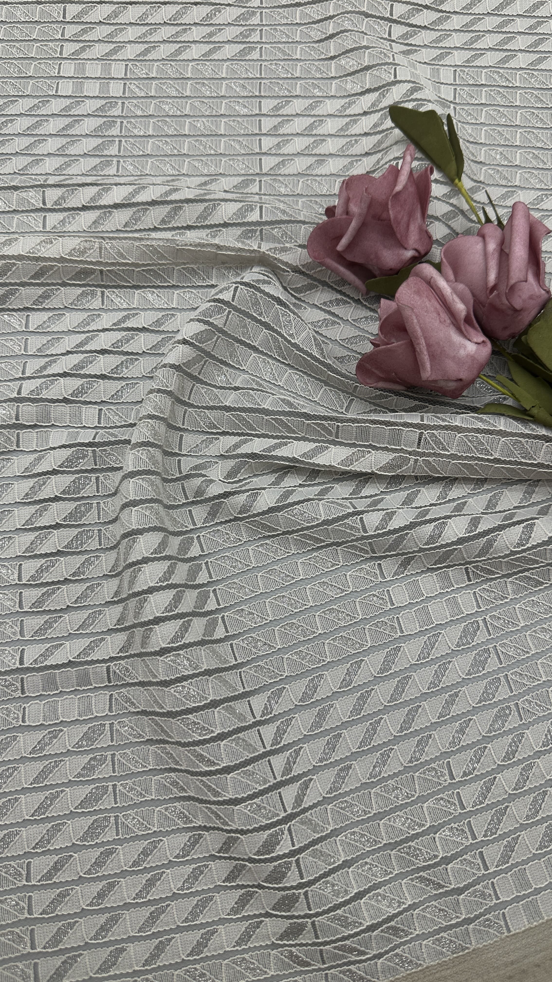 Een creatief team houdt de trends bij. De onderzoeksfaciliteiten en productieapparatuur zijn allemaal geavanceerd. De meeste van onze patronen zijn auteursrechtelijk beschermd en gebaseerd op originele kunstwerken. Het belangrijkste is onze focus op doorbraak van de technieken die de kunst van het kantmarkeren bevorderen. Bovendien heeft Leafy Lace voldoende grijze en afgewerkte kleuren om te reageren op de snel veranderende behoeften van onze klanten.