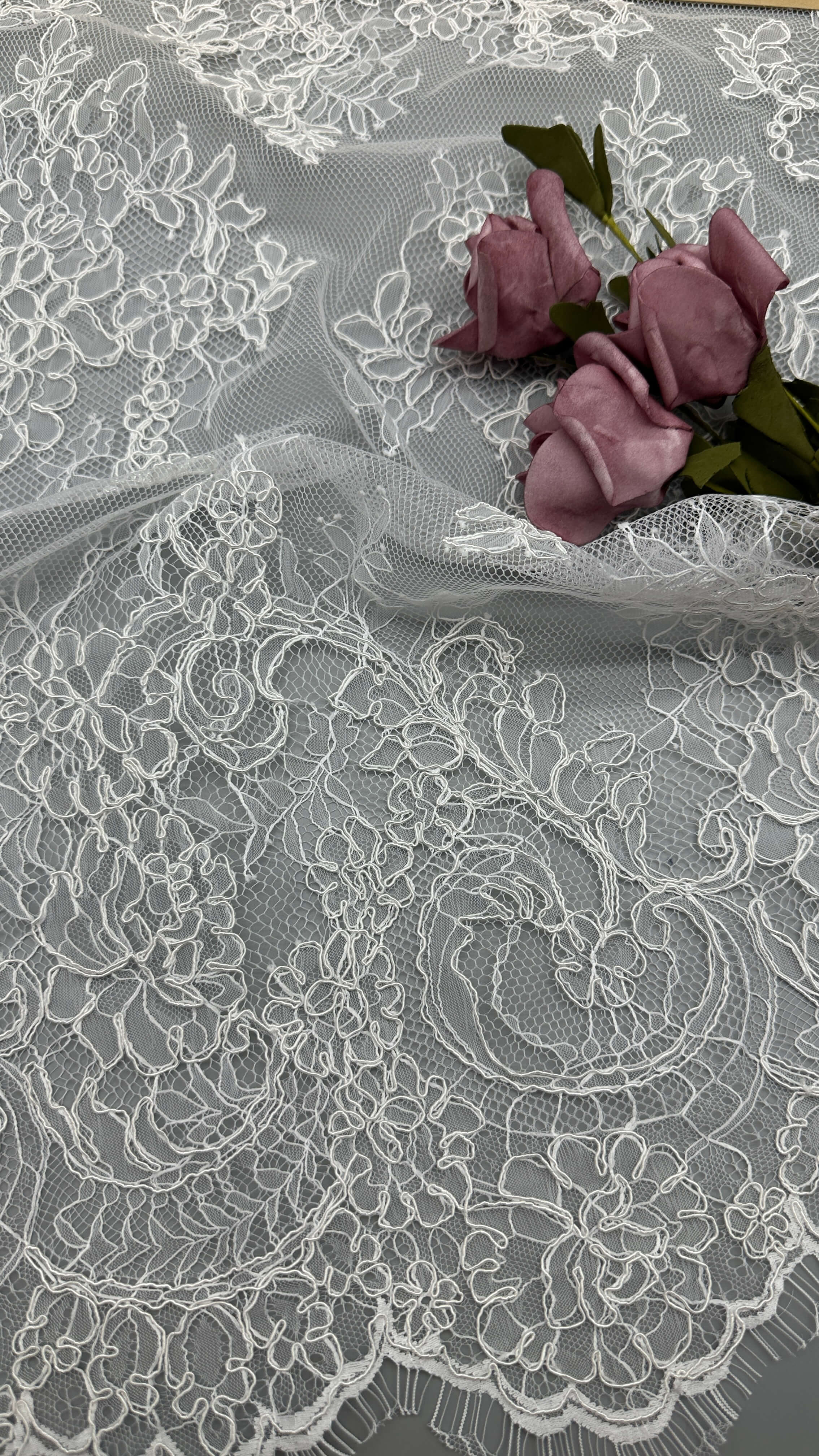Een creatief team houdt de trends bij. De onderzoeksfaciliteiten en productieapparatuur zijn allemaal geavanceerd. De meeste van onze patronen zijn auteursrechtelijk beschermd en gebaseerd op originele kunstwerken. Het belangrijkste is onze focus op doorbraak van de technieken die de kunst van het kantmaken bevorderen. Bovendien heeft Leafy Lace voldoende grijze en afgewerkte kleuren om te reageren op de snel veranderende behoeften van onze klanten.