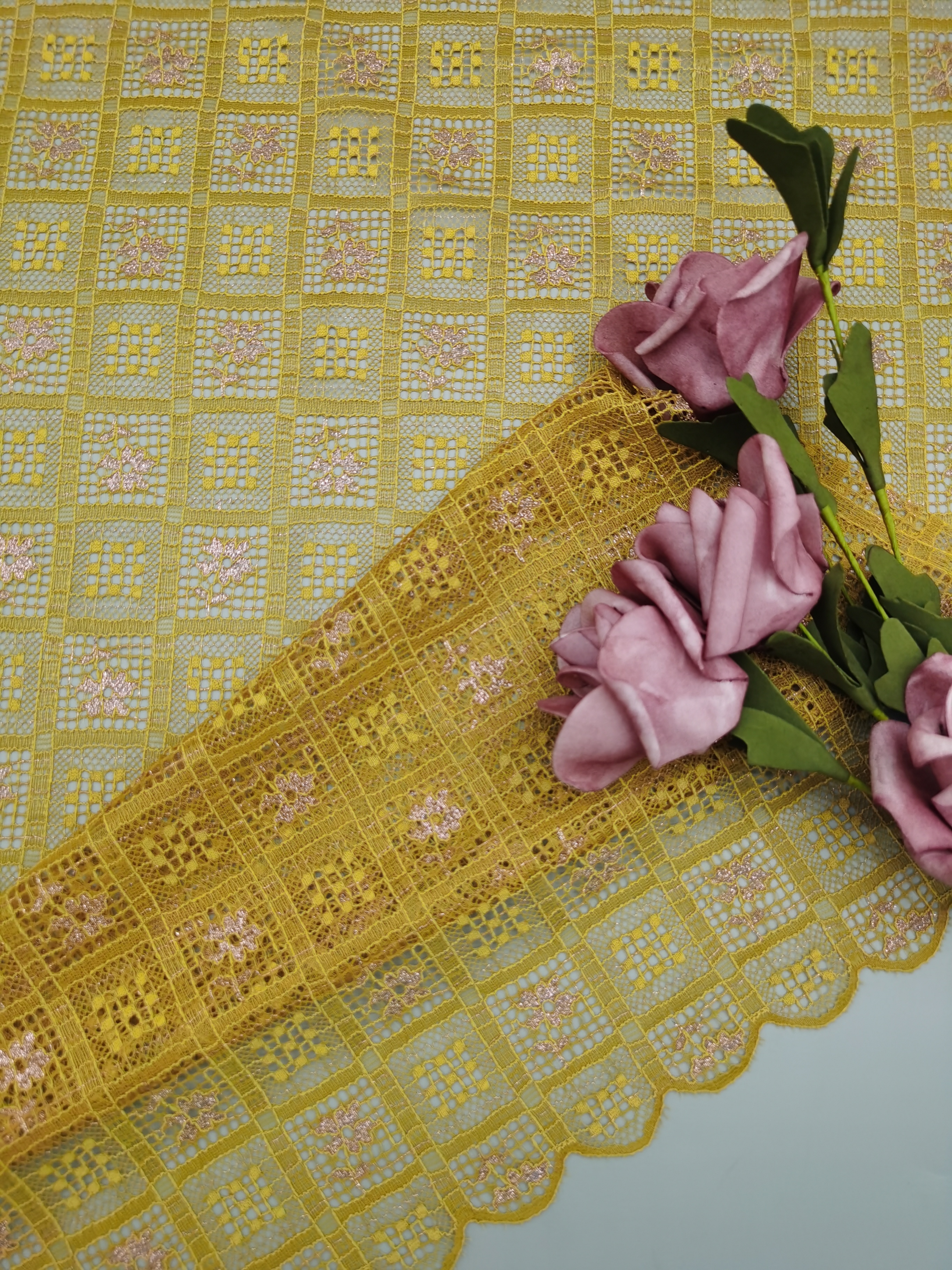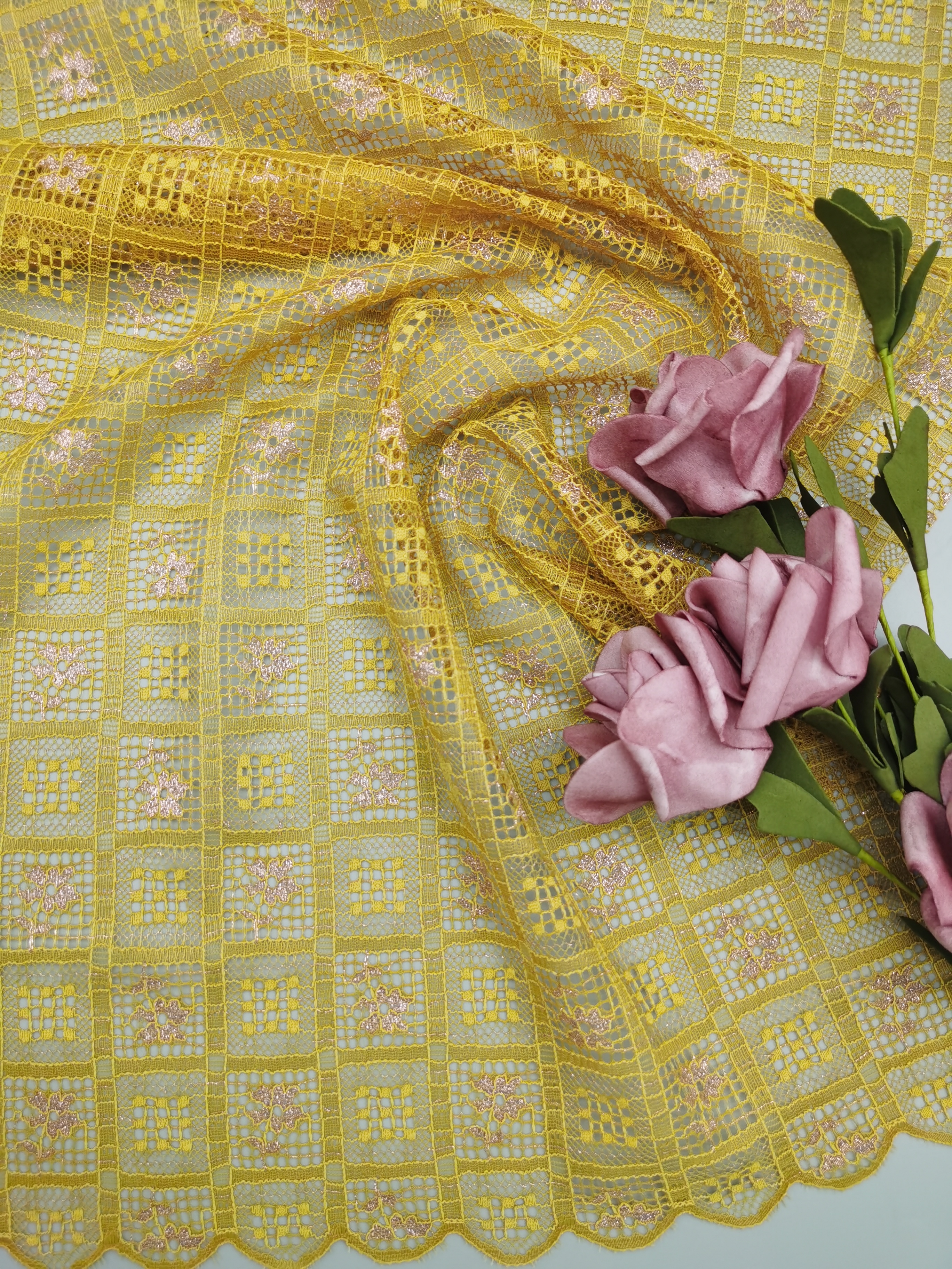 A creative team keeps abreast of trends. The research facilities and production equipment are all advances. Most of our patterns are copyrighted and based on original artwork. Most important is our focus on breakthrough of the techniques that advance the art of lace marking . Additionally, Leafy Lace Carries the enough greige and finished colors to response to our customers’ s rapidly changing needs.